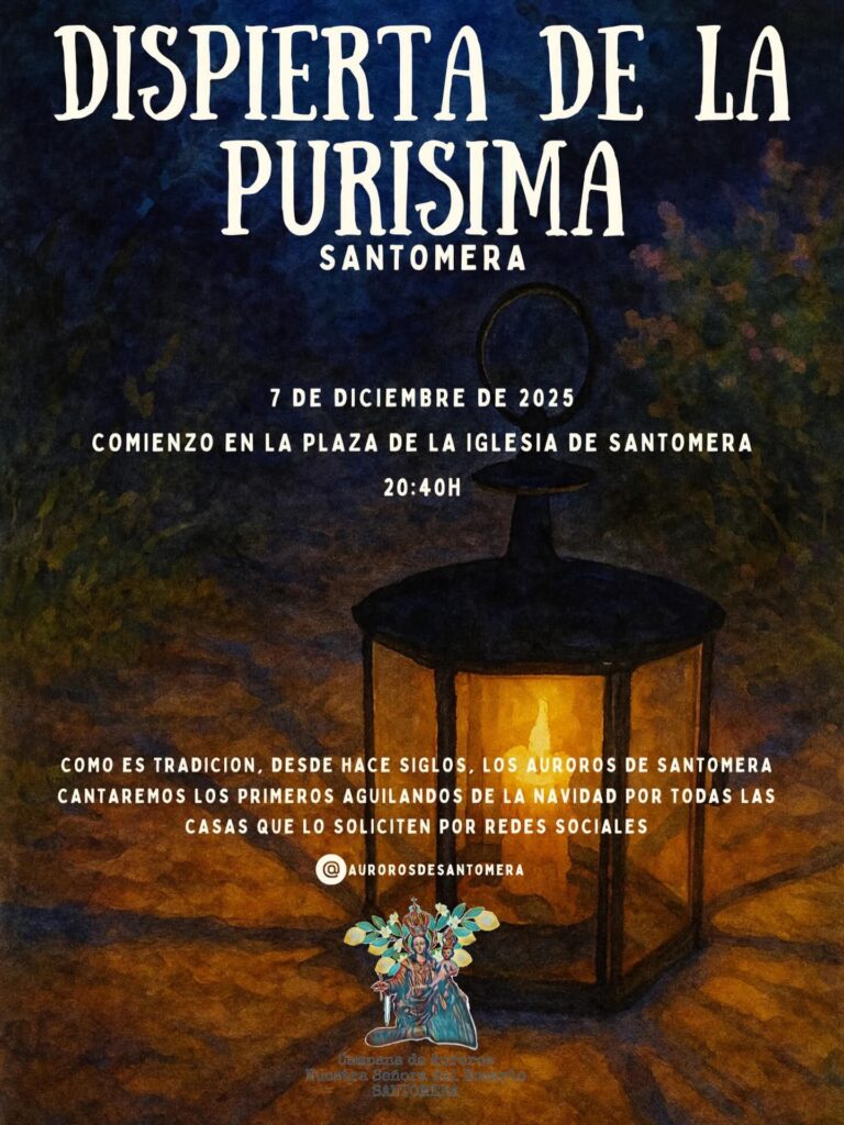 Desde la Plaza de la Iglesia de Santomera, y como viene siendo tradición, los Auroros de Santomera cantarán los primeros aguilandos de Navidad.